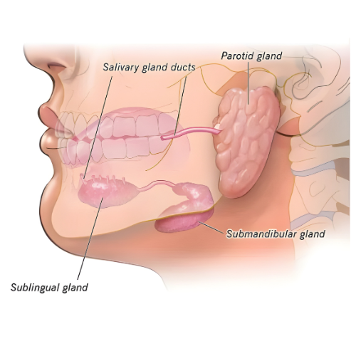 Salivary stones (also known as sialolithiasis) are calcified deposits that form within the salivary glands, most commonly affecting the submandibular gland. These stones can block the flow of saliva, leading to pain, swelling, and recurrent infections—especially during meals.