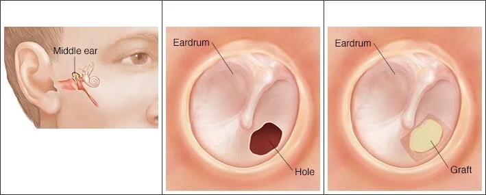 Tympanoplasty is a surgical procedure performed to repair a perforated eardrum. The surgery involves closing the hole using a graft (usually taken from the patient’s own tissue) to restore the integrity and function of the eardrum.